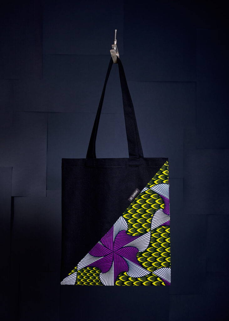 Bossa de wax combinada amb sarga negra. 100% cotó. Mides Ample 36 * Alt 40 cm