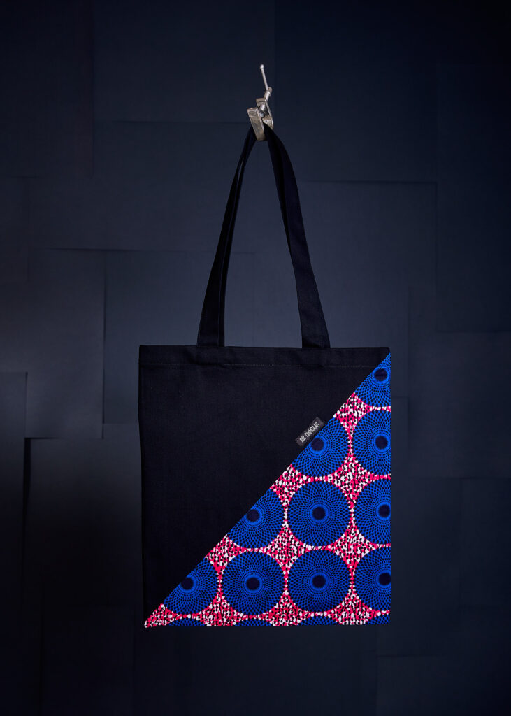 Bossa de wax combinada amb sarja negra. 100% cotó. Mides Ample 36 * Alt 40 cm