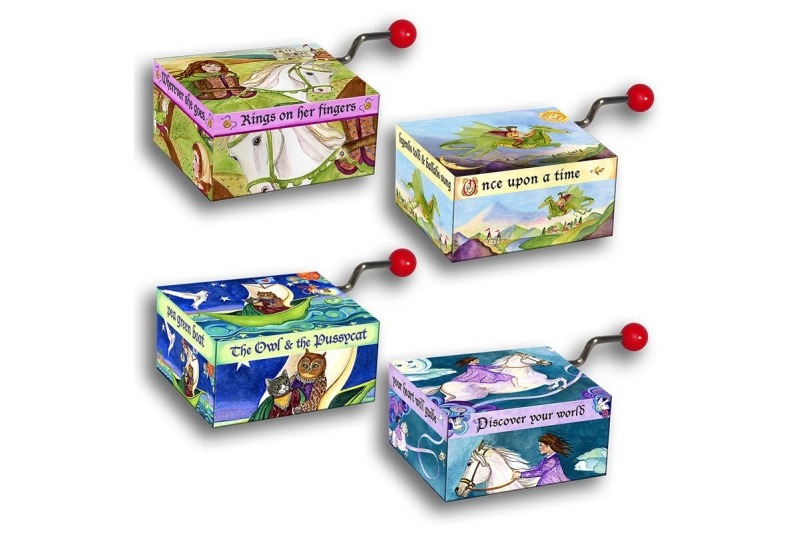 Aquest mecanisme musical de 18 làmines amb maneta es presenta en una capsa de cartó il·lustrada en forma de llibret.