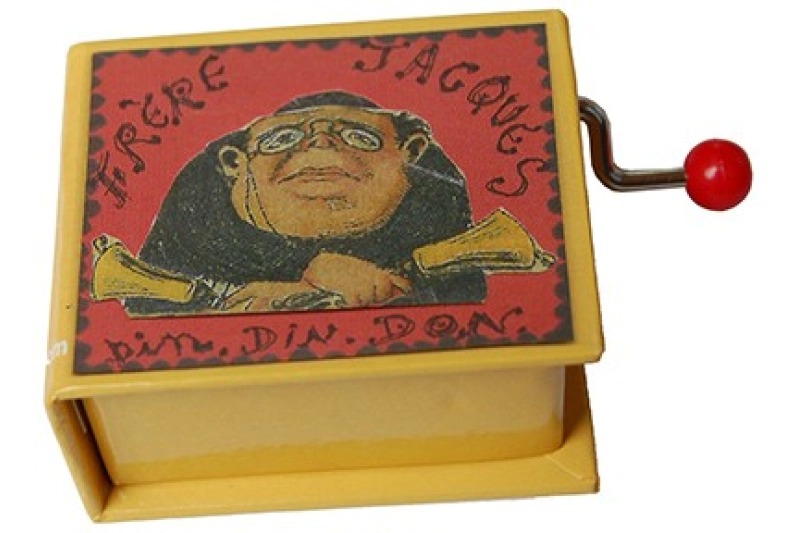 Aquest mecanisme musical de 18 làmines amb manivela es presenta en una capsa de cartró ilustrada en forma de llibret.