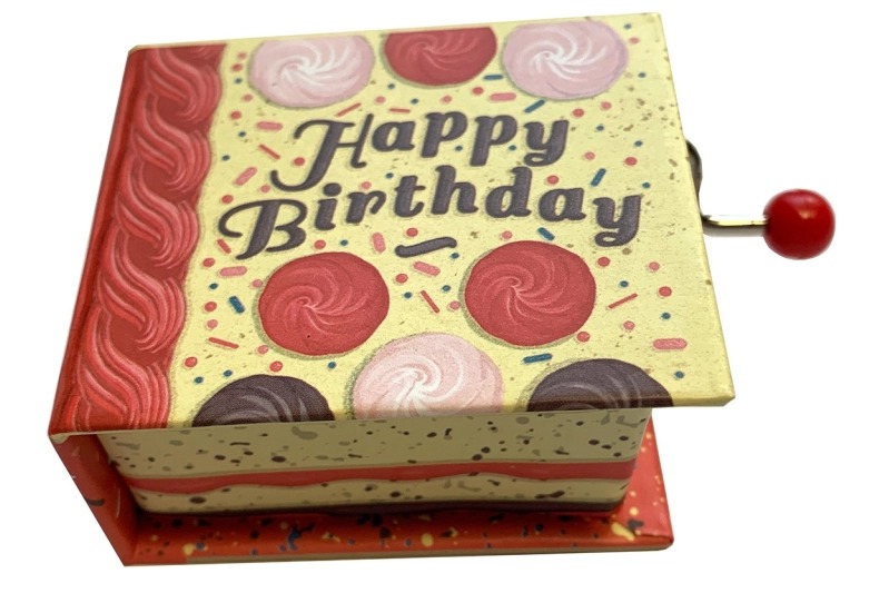 Aquest mecanisme musical de 18 làmines amb manivela es presenta en una capsa de cartró ilustrada en forma de llibret.