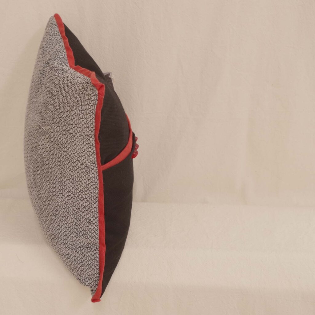 Coixí desenfundable, confeccionat amb diferents teixits i tancat amb botons.
