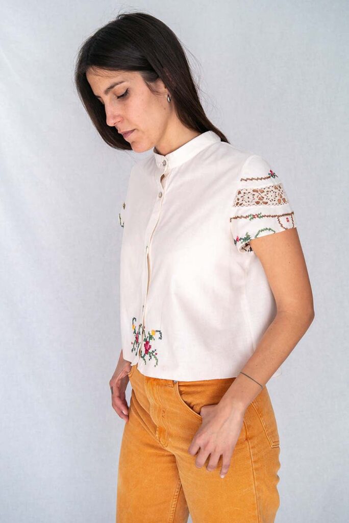Si tens, guardat en un calaix, unes estovalles, un llençol o qualsevol altre teixit brodat per alguna dona important per a tu, podem donar-li una segona vida i convertir-ho en una peça de roba. Si no tens cap tela però vols que fem per a tu una peça única, també pots triar de la nostra selecció de teles oblidades.