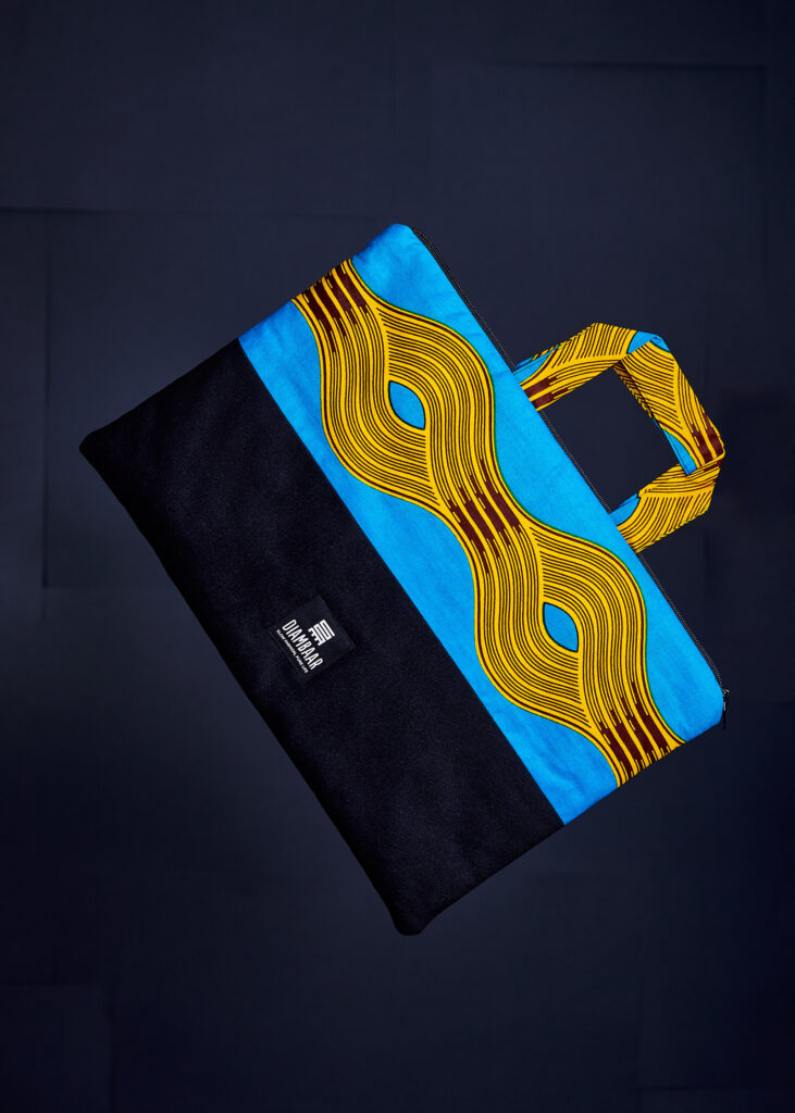 Funda ordinador encoixinada combinada amb teixit wax 100% cotó.