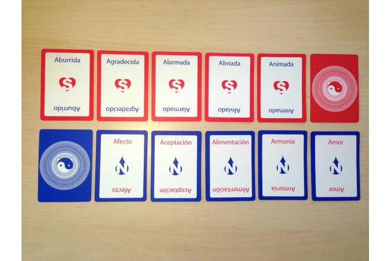 2 baralles de cartes amb 53 sentiments i 54 necessitats per poder fer jocs basats en la Comunicació No Violenta (CNV) per promoure la Pau i transformar conflictes entre individus, famílies, organitzacions i governs.