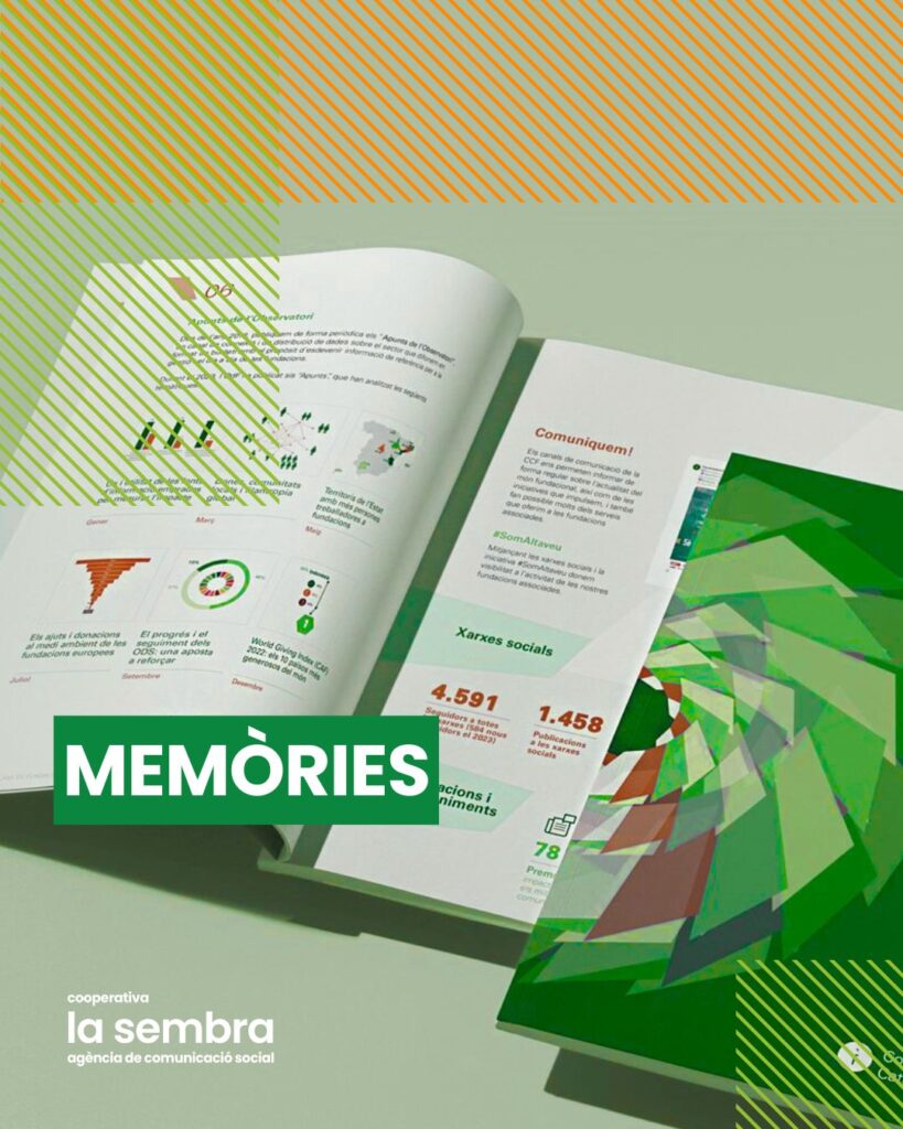 Elaboració de memòries d’activitat, generant un material de posicionament i transparència per a la comunitat i entorn de l’organització.