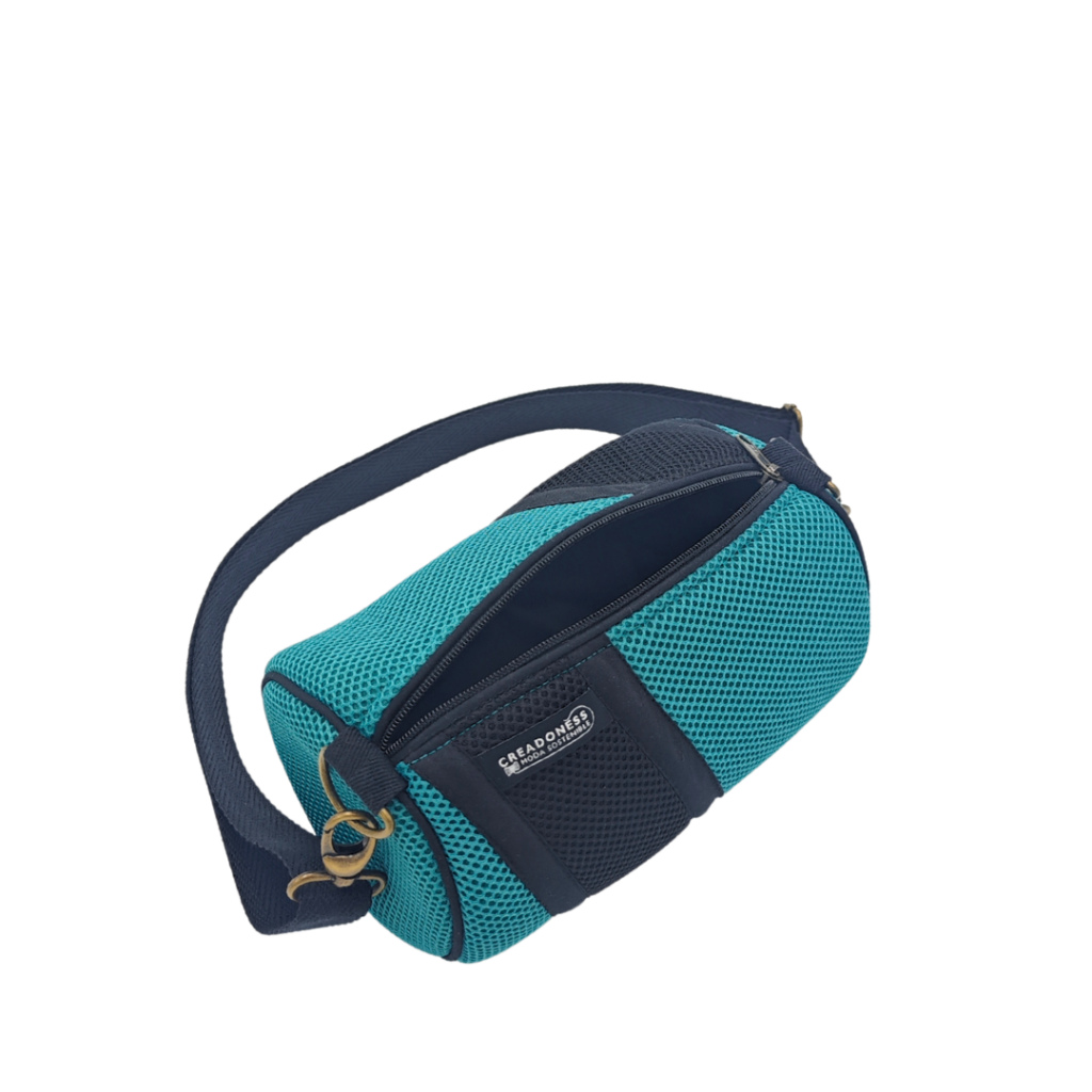 Material: Aquesta Mini Bossa està fet a mà per dones que nosaltres formem al nostre Programa Social. És un producte confeccionat amb teixit tècnic 3D i a l'interior està forrat amb loneta impermeable reciclada.