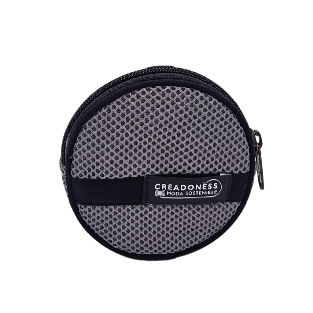 Material: Aquest moneder està fet a mà per les dones que formem en el nostre Programa Social. És un producte confeccionat amb teixit tècnic 3D i, al seu interior, està folrat amb loneta impermeable reciclada negra.