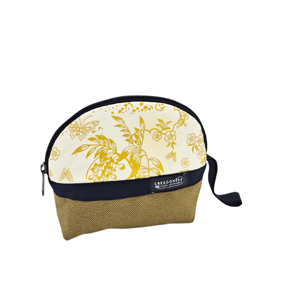 Material: Aquest necesser petit està fet a mà per les dones que formem en el Programa Social de Creadoness. Està confeccionat amb una suau loneta de cotó bicolor, amb la característica de ser antimanchas. A l'interior està forrat amb popelí negre.