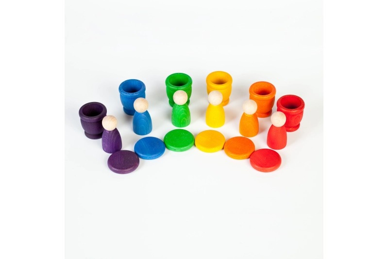 Inclou: 6 nins, 6 monedes i 6 mates amb 6 colors diferents. Inclou bossa de roba.